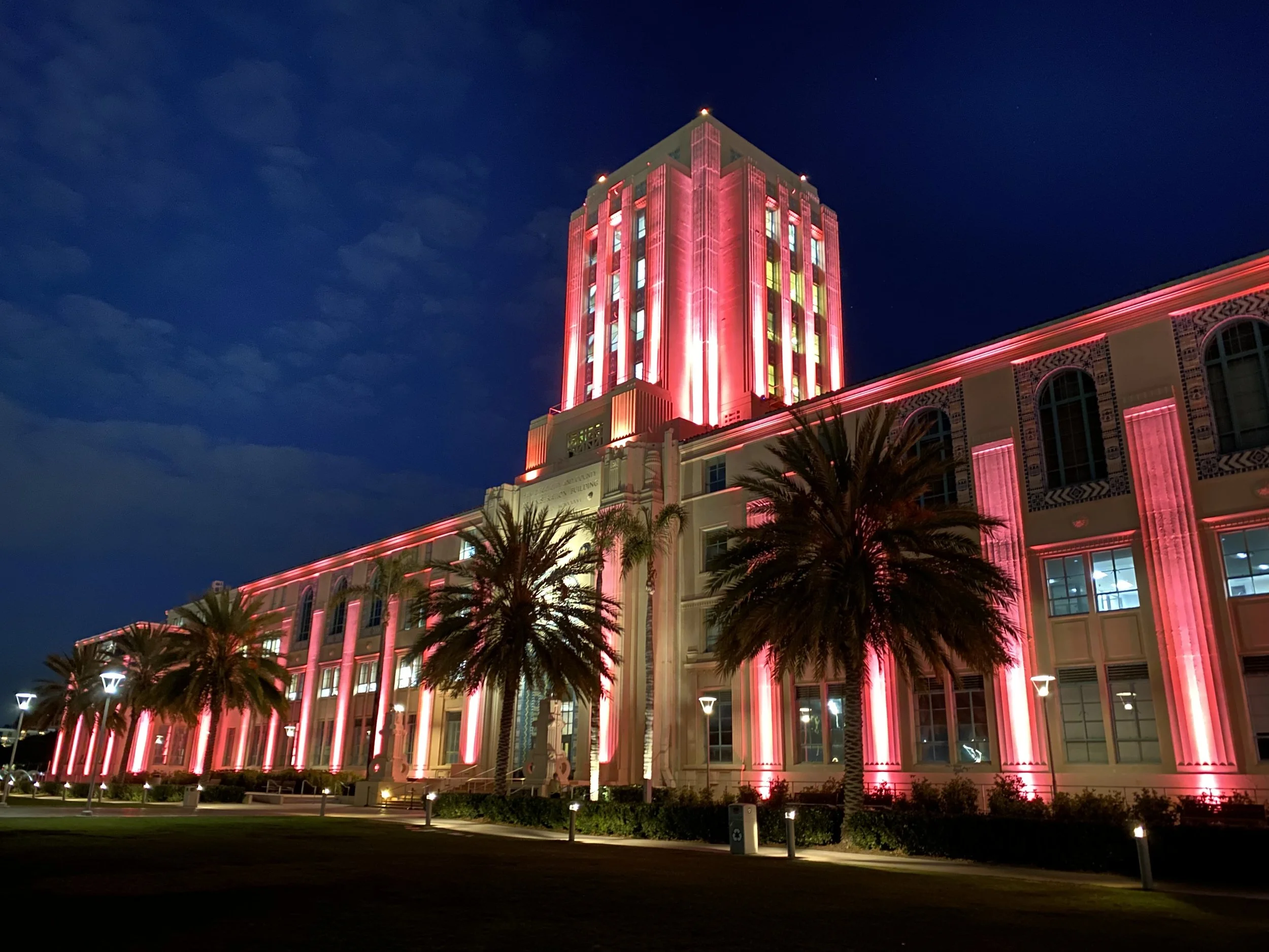 The County Administration Center was lit in orange Thursday night in observation of the United Nations International Day for the Elimination of Violence Against Women.