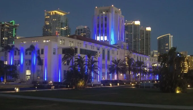 /The County Administration Center was lit in blue Monday night in recognition of National Hospital Week.