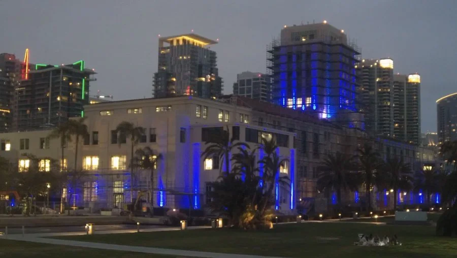 The County Administration Center was lit Tuesday night for Child Abuse Prevention Month.
