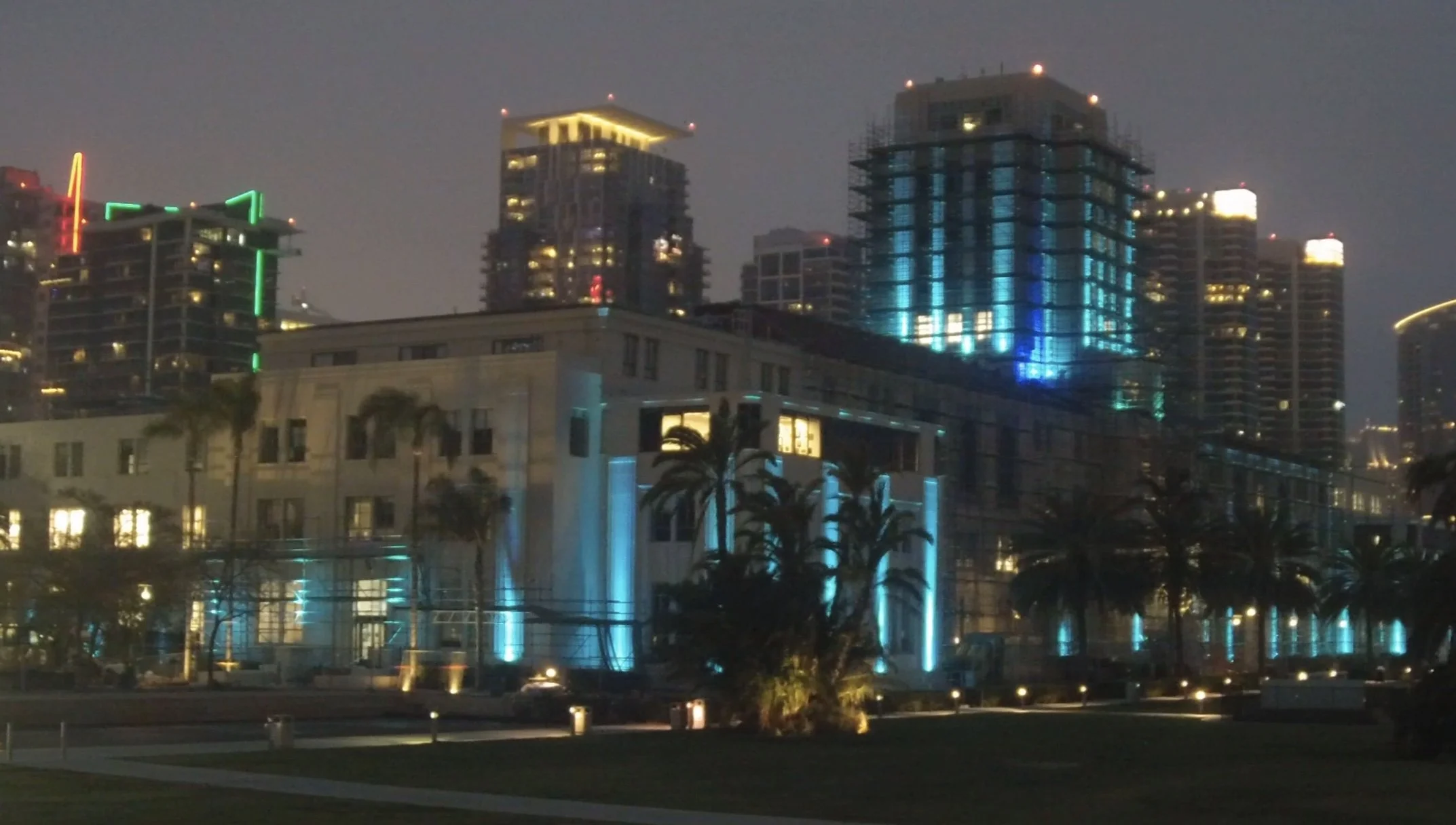 The County Administration Center was lit Wednesday night for Denim Day, a campaign in honor of Sexual Assault Awareness Month.