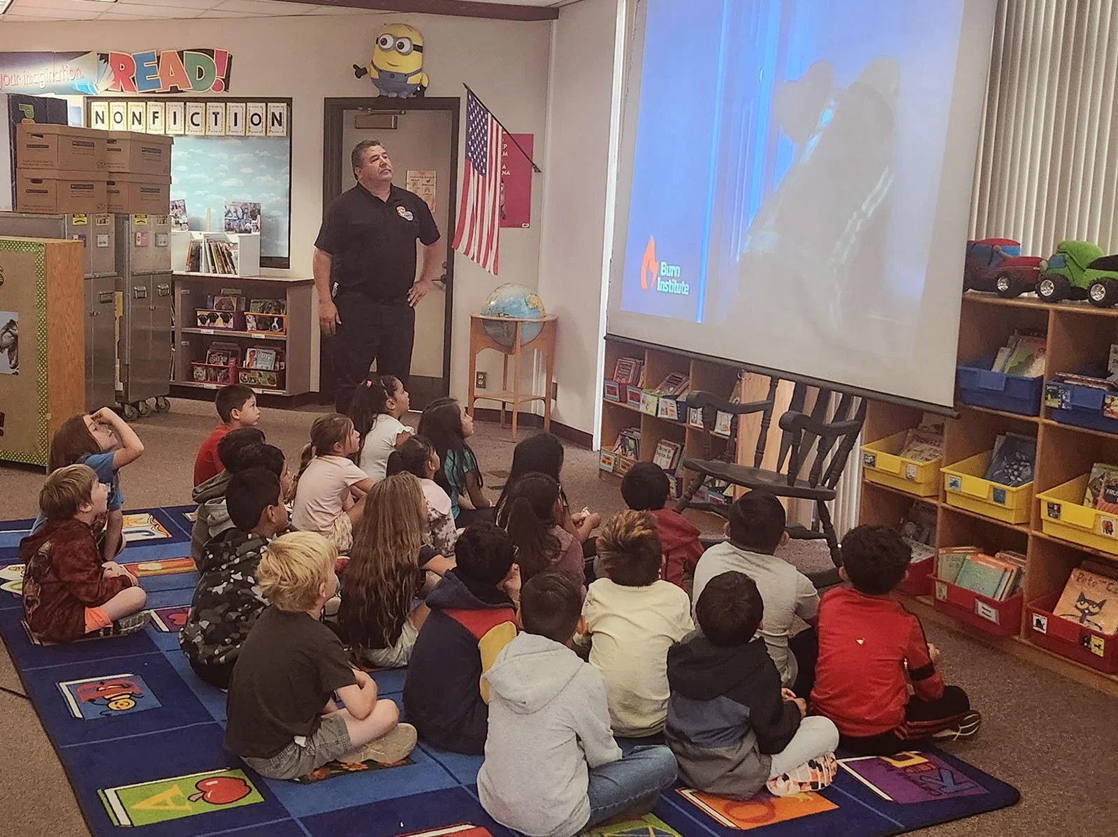 /Fire Prevention Specialist Tina Rose for San Diego County Fire, submitted this picture of her colleague Fernando Aguirre in the Community Risk Reduction division, talking to a class at Ramona Elementary School on May 18.